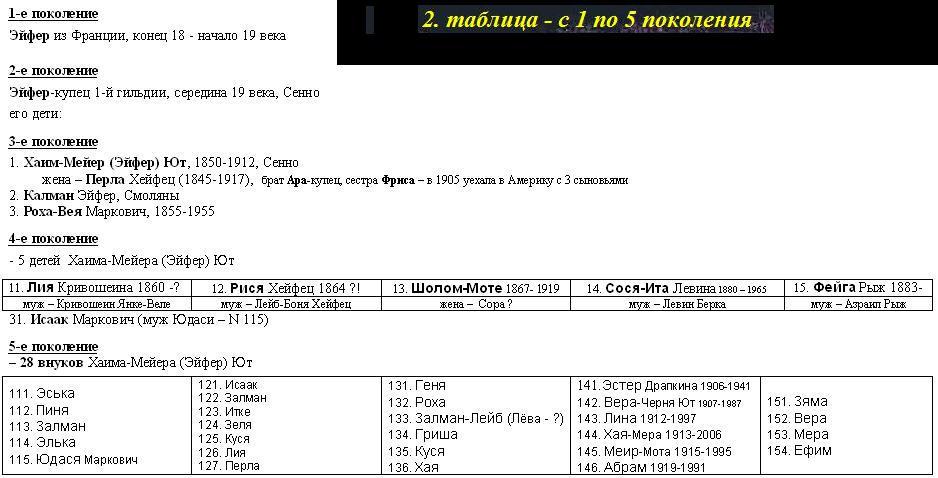 3. таблица - с 6 по 8 поколения